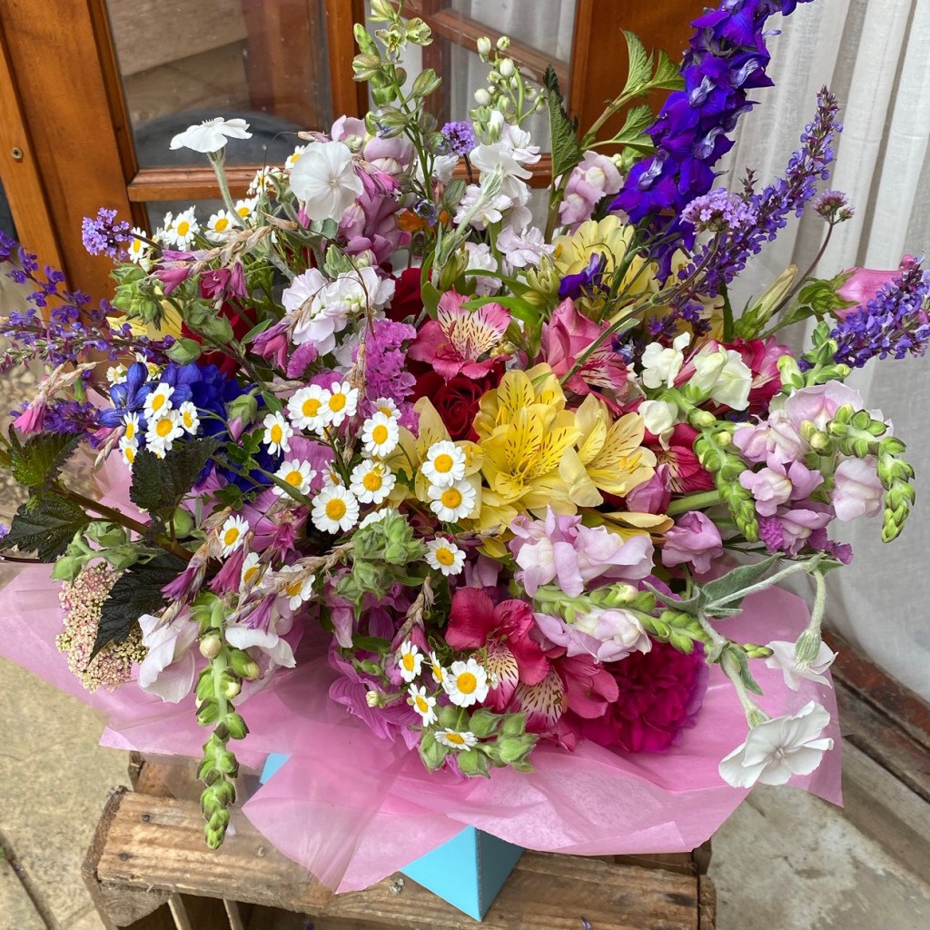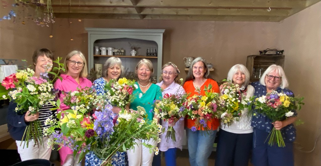 Saturday: Up early to get the room tidied from arranging all the flowers the night before, get the room straight so that people arriving for the workshop have no idea what a muddle it was in just an hour before they arrived. John went off to deliver a regular flower order, I don’t have time to do it today but he is used to delivering for me 😊 An emergency dash to another grower because the delphiniums I had were shedding petals everywhere (that’s a story for another day and I can chalk that up to experience 🙄) Teach the workshop, enjoy chatting all things flowers with some lovely ladies, clear everything up have a quick lunch break then organise exactly how I am going to transport five vases of tall flowers to a customer on a very hot afternoon 🤪 deliver the order successfully and then off round to Shelley and Martins for a BBQ.