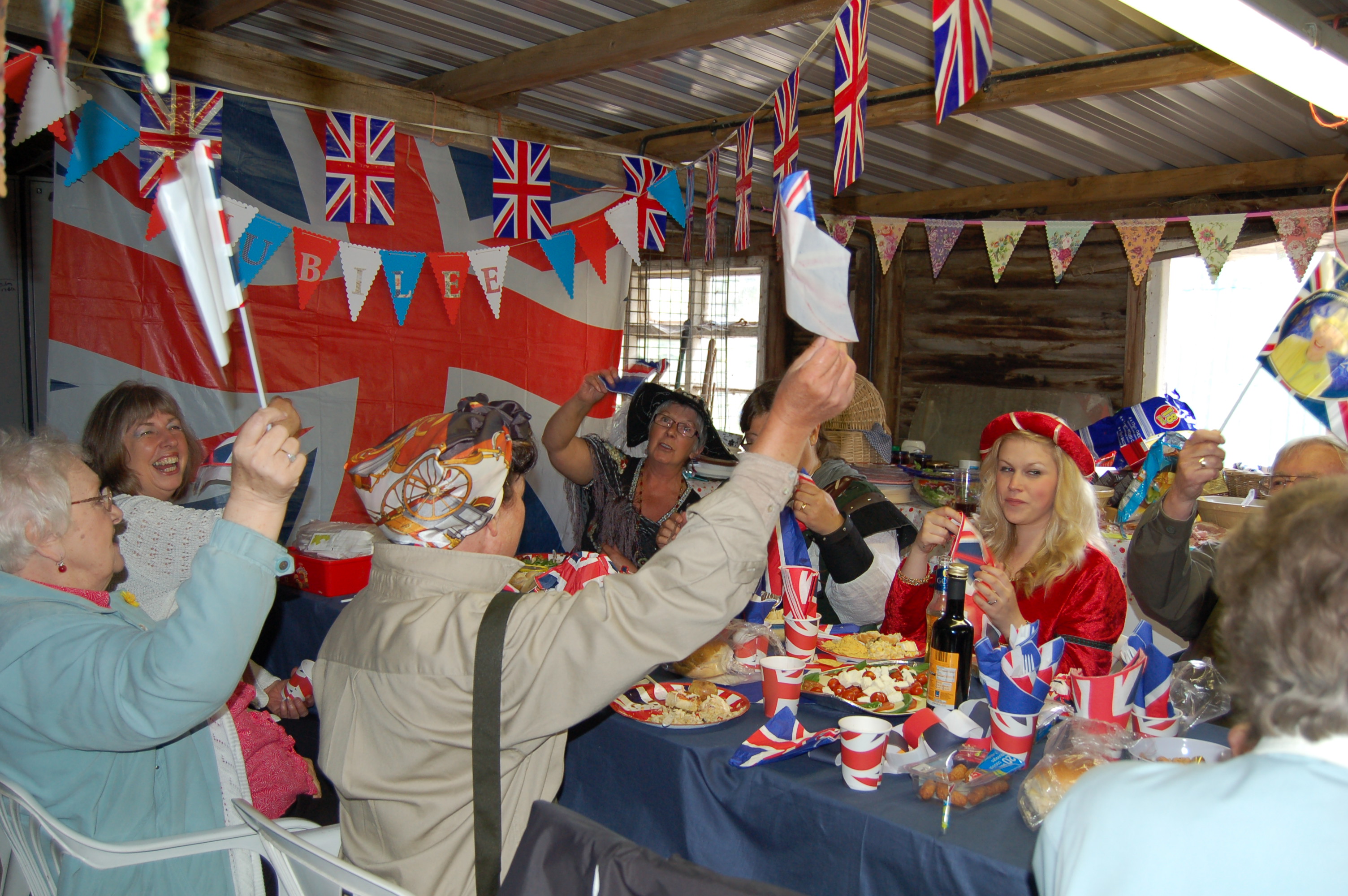 I had better go and get on with cleaning the kitchen and also check on the new arrivals, they probably looked like drowned rats by now and are stood wondering what the heck happened as this morning they would have been in a huge dry shed, next stop Shilton, outside in a run and in the pouring rain, they do have huts they can go into but chickens are not that clever! I will leave you with some photos of the Jubilee knees up and the thought that the rain will have to stop eventually, wont it?