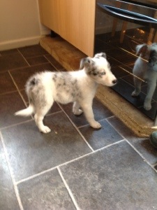 Yesterday we phoned the people about the puppy and she said you can pick her up anytime, we will be there in an hour, I said! We bought Mia home and introduced her to the other dogs, the chickens, geese and horses, I think she was a little overwhelmed. Her first major discovery is what happens when you try to get through the electric fence, yelp, she shot off across the field startling the sheep so much they ran away from her. No doubt there will be plenty of Mia stories to come over the next few weeks.