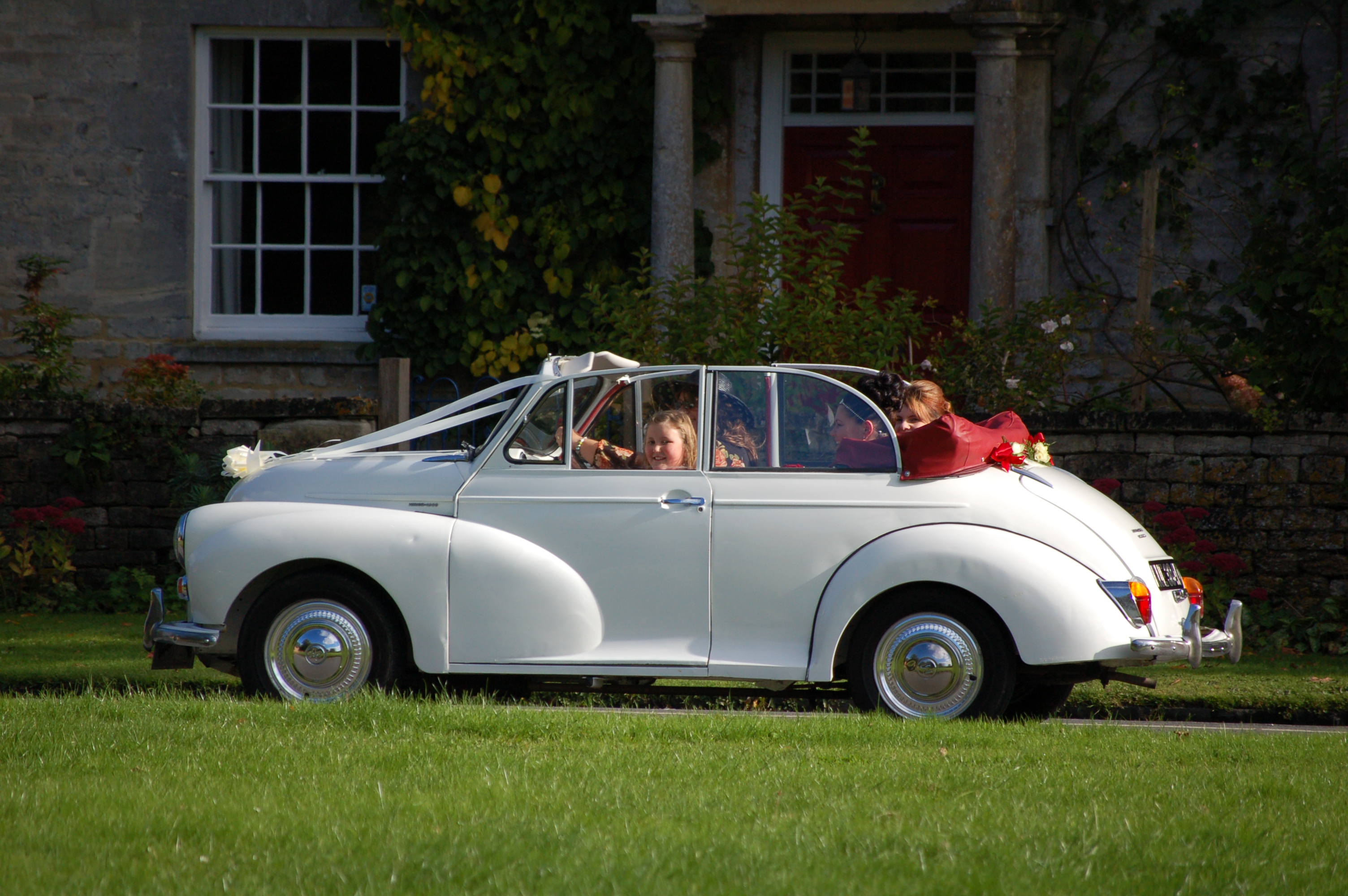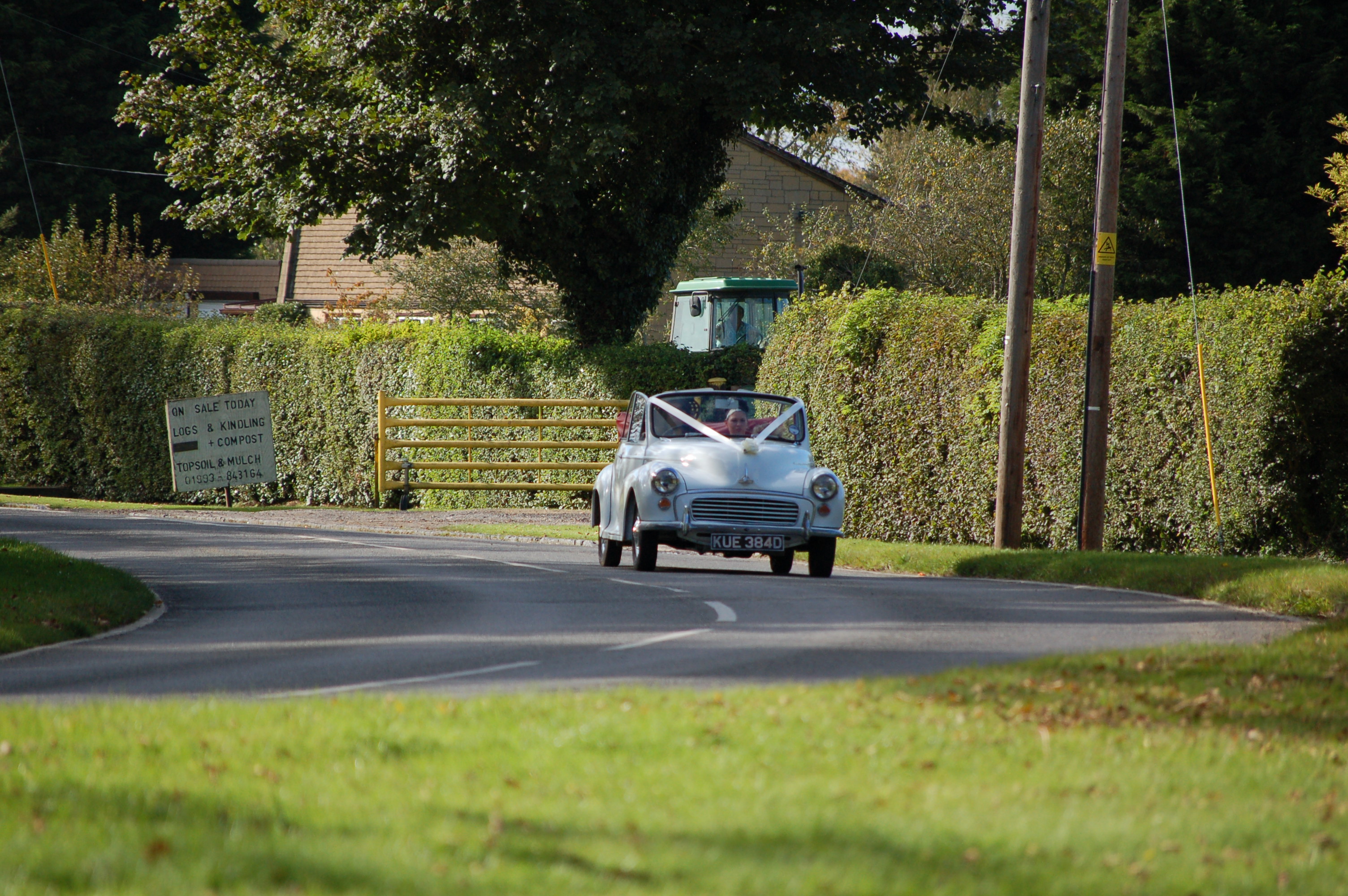 Some other friends tied the knot on Saturday and I was delighted to see that the weather was glorious for them. It was a lovely country wedding in the next village along and the transport for the Bride was my Sisters old Morris which was buffed and polished and made beautiful for the occasion, I managed to get some photos of them en route and asked the Bride’s permission to publish them on my blog this morning, she agreed and so here they are, I hope you agree that  ‘Daisy’ has to be one of the best ways to get to the church on time.
