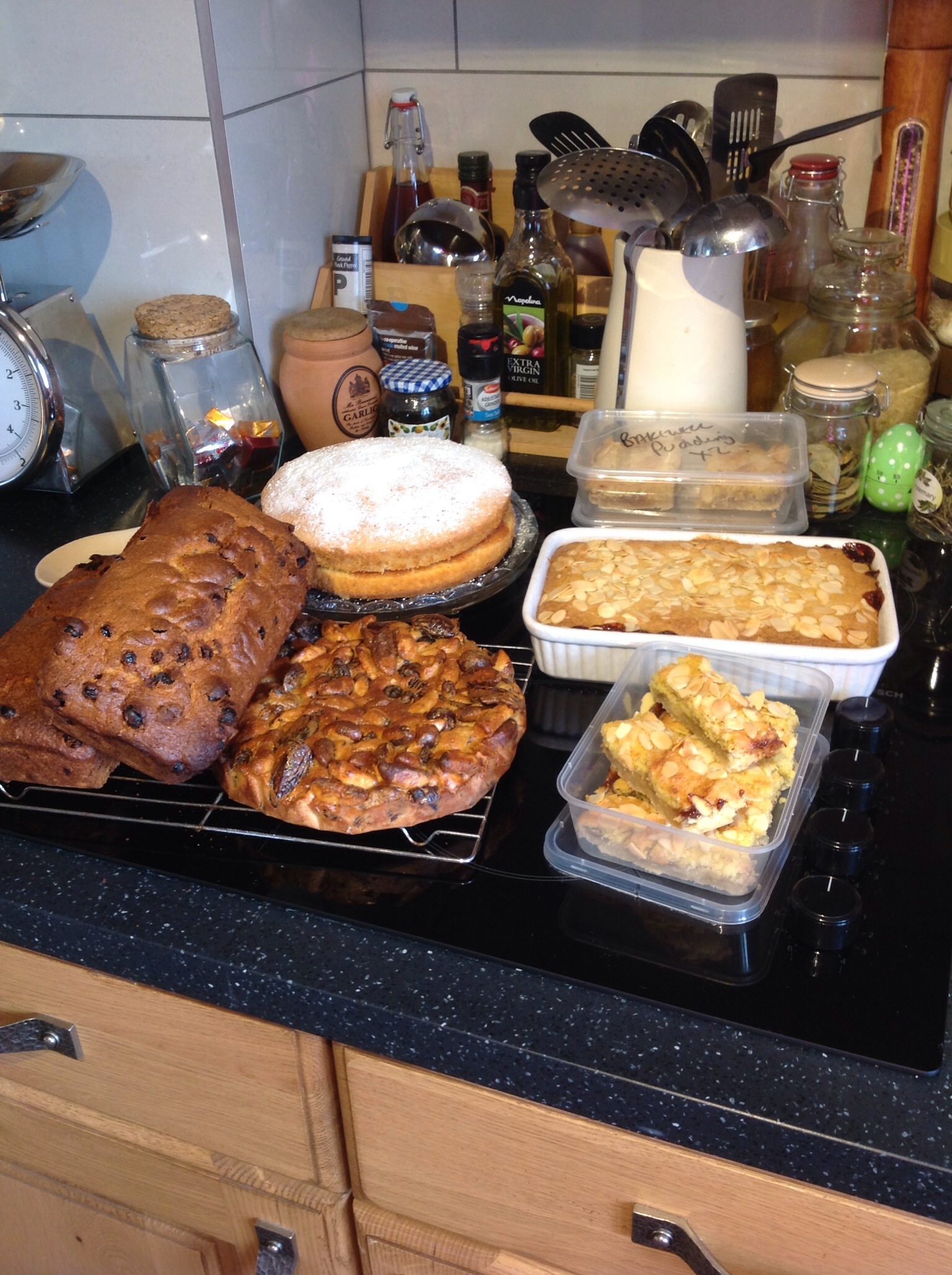 I spent a morning doing a bit of baking, the result was a couple of fruit cakes, a lemon and lime drizzle cake, two bakewell puddings, a Brazil and cherry cake and a Victoria sandwhich, not a bad mornings work. My aim was to use up as much as I could from my baking cupboard, which I think I achieved. We are trying to make an effort to use up what we already have rather than buy something else, so as long as I have made cakes and puddings Hubby is not allowed to buy any when we go shopping. We are getting through some of the fruit and veg that was frozen last year, which is good because it won’t be long before we are picking again. The temptation to grab something quick off the shelf in the supermarket is great especially when you are busy and don’t have much time, but the reward of making and eating your own produce is much greater in my opinion and it tastes soo much better.
