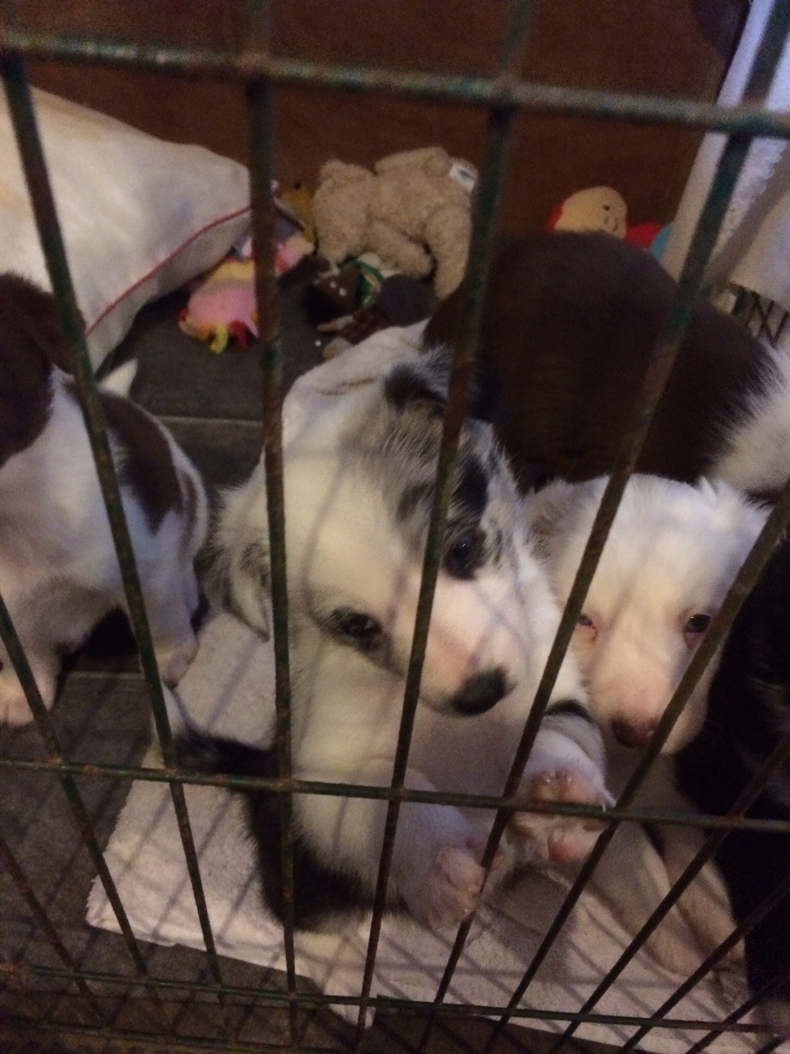 Mia’s puppies are growing super fast and all developing their own characters, they are five weeks old now and when I let them all out of the pen it’s pure carnage. They take up a fair bit of time through the day as Mia is only feeding them morning and before bed, the rest of the time, about three times a day, I let them out to eat hard feed, then there is a constant round of mopping up after them. As soon as I turn to clear up one lot another appears and they have now got to the age where, trying to grab the tissue as I clear up, is a great game. Then they need a little playtime, so they have carrots to chew on, cardboard tubes and empty plastic tubs to push around and a ball to figure out, who says you need fancy toys, after that comes the best bit, cuddle time, I am making the most of it while they are still here.