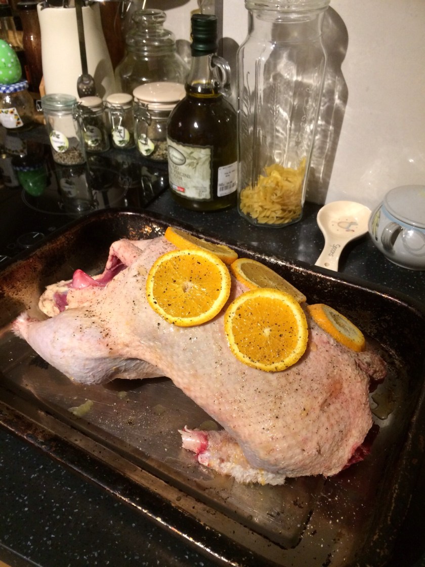 We made a snap decision to do the deed and decided that as the necks are pretty strong, decapitation would be the best way, this is still legal although not ideal but as we don’t have a bolt gun then an axe it would have to be. To be honest it was not that bad and very quick as you can imagine, once we had got over it I went on to pluck it, hang it and eviserate it the next day, then it went in the oven that evening with garlic, celery, bay leaves and oranges, it was delicious and I am glad we didn’t waste it. We probably will do ducks again but I am not in any hurry to rush out to the pen and round them up they will be delighted to know π