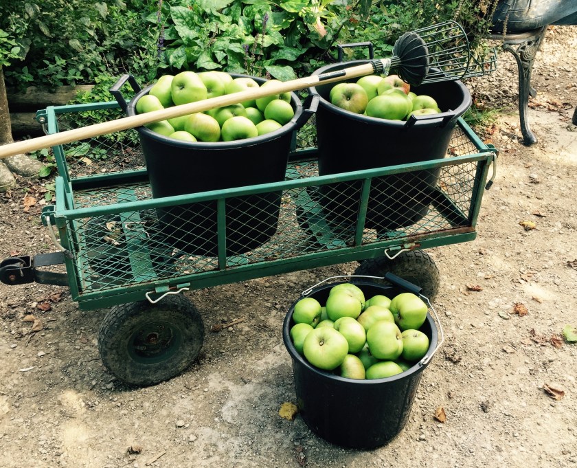 I had a fair few small cucumbers so I decided to have a go at fermenting these in a salt brine with coriander seeds, peppercorns, garlic and some fresh fennel, I tasted the tomato one and they are like little burst bombs of goodness. It’s an ideal way to get some freshness in your diet during the winter months, and I shall be looking at what else I would like to ferment, and of course it’s very good for your gut bacteria 😀 In the afternoon I decided to pick some of the cooking apples, we didn’t have any last year so I am making sure we have enough for this year and next if needs be lol, my apple picking gadget is great but you still get hit on the head by rouge fallers and end up with neck ache in the process, still, a good couple of hours work, well executed.
