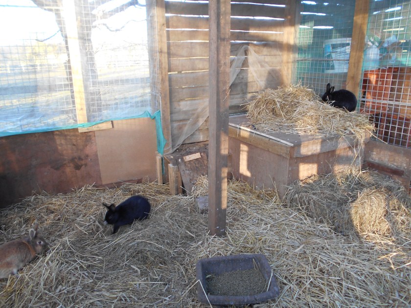 Sunday: Lovely sunny but cold morning again today and we have been mostly preparing for the cold weather that has been forecast. First the routine stuff then the cleaning out and bulking up of extra bedding for the rabbits, quail and orchard hens, filling up all available water buckets and vessels as the pipes will be frozen and at least if we have things filled up we can break the ice to retrieve water. On cleaning out the rabbits I found two more newly born babies, I half expected this as the rabbit that was out before we caught her was bound to get knocked up in between times, the saying is certainly true!