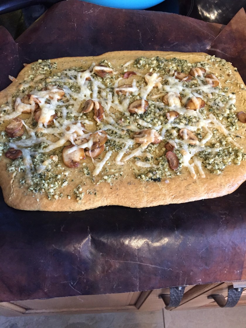 I made an alternative pizza for lunch today, for my last birthday one of my sisters gave me ‘a bunch of flours’ which included teff flour, don’t worry I’d never heard of it either! So I used that and ground almonds, egg, garlic powder and olive oil to make the base then walnuts, garlic oil and basil to make a pesto and topped with mushrooms and a bit of cheese (though the cheese is not strictly allowed 😲) verdict: not bad 😛