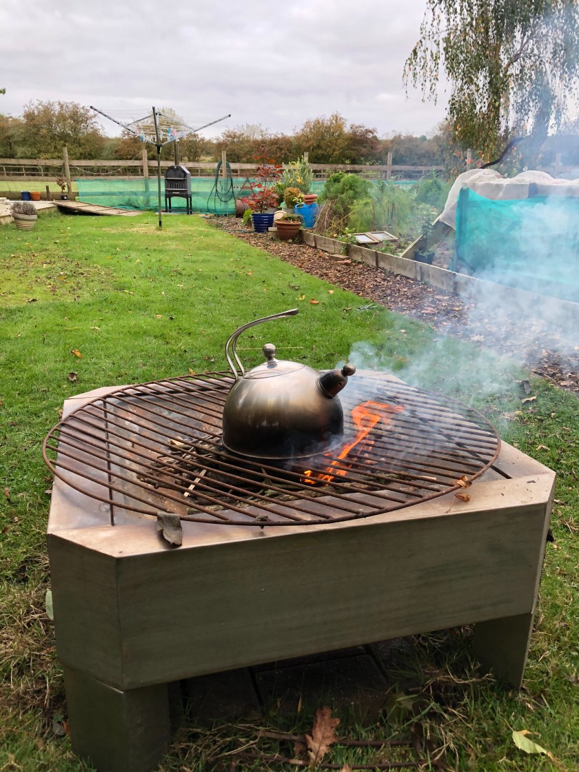 Monday 8th October: It was eventful from the off! Before Johns van even disappeared from view down the drive, we lost power, no electric, so I check the main fuse board, nope not our electric at fault, next find the phone that plugs into the phone line because we have the handsets that are powered by electric as well which don’t work in a power failure. Call the electric board, yep they have a fault on the main line and power should be restored by 11am, 11am! I haven’t had my coffee yet 🤪 so dig out the fire pit, hunt for sticks and something to light it with, couple of bits of flint knocked together should do it 🤪 actually we have a great wood supply, paper and a gas powered lighting stick so they will work just as well 😆 get the old Rayburn kettle out and bobs your uncle, I have coffee, just as the power was restored at 8.41 🤣