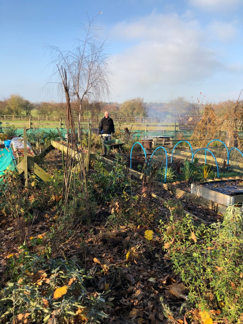 I did finally get outside, John barrowed more muck onto the veg beds then went on to clean out the hens and I raked up the fallen leaves, these were then deposited on the beds as well. Leaves are an overlooked, valuable resource when it comes to improving soil structure, indeed to most people they are a pain, swept or blown into a pile then deposited in the green bin 😫 if only you knew how much they add to the soil you wouldn’t throw them away. Gather them up by all means but then put them on your flower beds or stuff the tops of your pots with them, over winter the insects will feed on them or they will break down giving you some lovely nutrients, win, win 😁