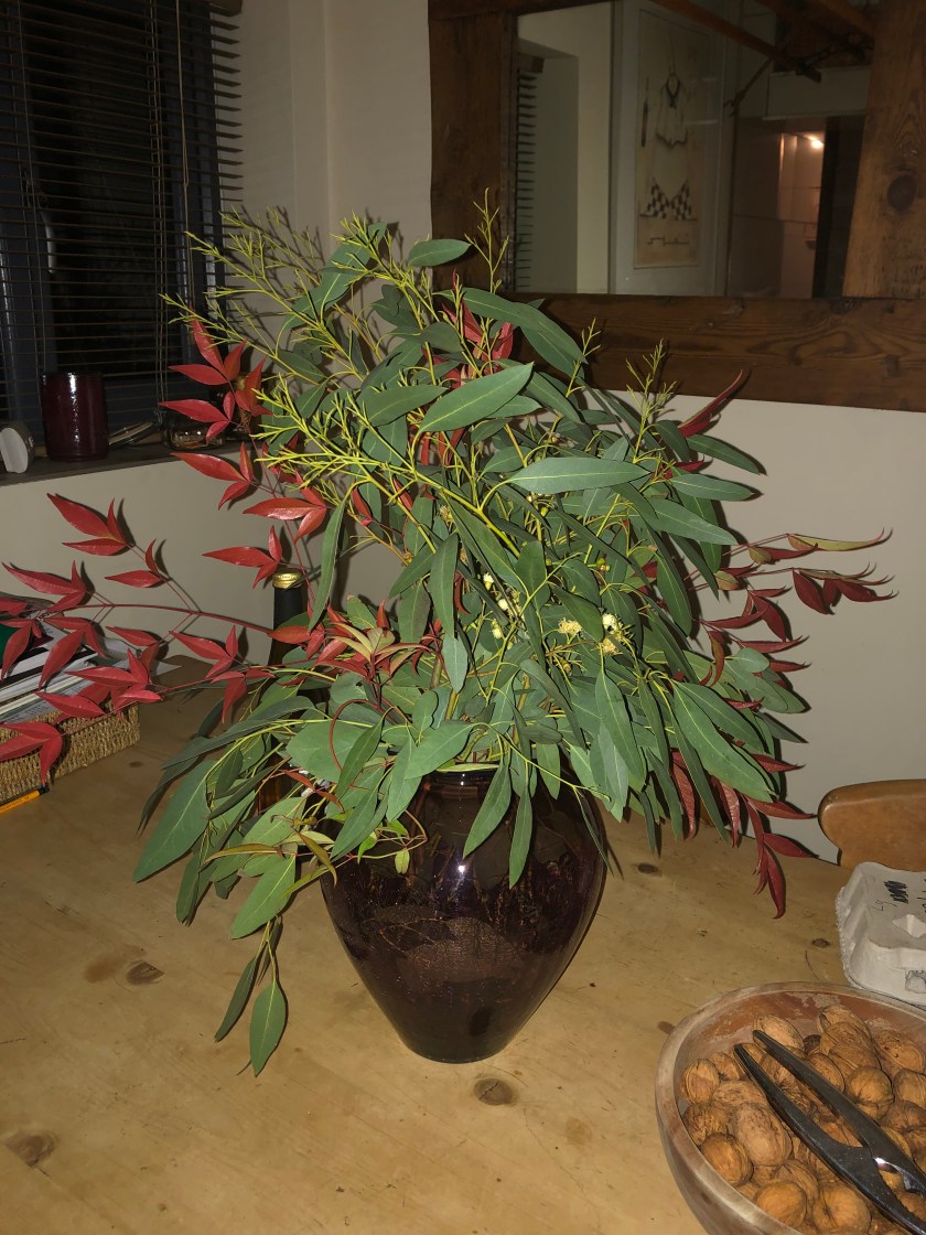 One of our favourite programmes at the minute is Escape to the Chateau with Angel and Dick Strawbridge, between the two of them there is not much that they can’t achieve. I love watching it, the recycling, repurposing is impressive enough but when you see the end results it’s just amazing and very inspirational. One of the resources in their vast garden is eucalyptus which I also happen to have and so for New Years Day dinner which I was cooking for the family I gathered a bunch of it and put it in a vase, it looked fab even if I do say so myself lol.
