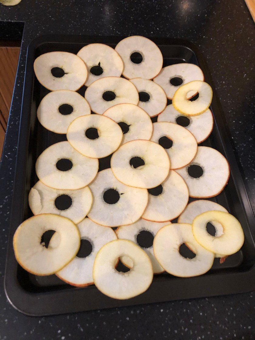 I did feel inspired by looking through one book and so I did some apple slices to dry in the oven for storing, great snack for the grandchildren or for use on breakfast porridge I reckon.