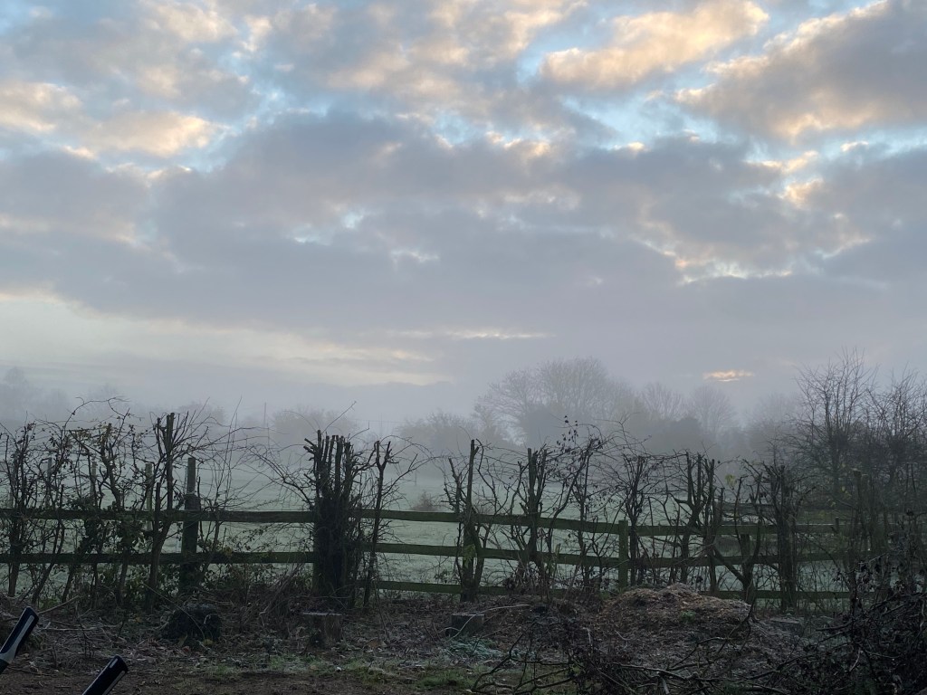 Monday 23rd November 2020: An atmospheric foggy morning this morning and it had been cold enough overnight for a frost. It’s almost noon and I haven’t stopped this morning until now. With the mornings getting ever darker I said to John that I would take over the morning feeding etc so that he can get off to work on time so this morning was my first for a long time that I have done everything. Feed and water all the animals, clean out the ducks, fill up the wild bird feeders, put the washing on, get the milk in, take the rubbish and empty milk bottles out, you get the idea. I got a chicken out of the freezer yesterday for tonight’s dinner and so I figured as I was going to have the oven on I might as well make good use of it. At the moment I have bread on the second prove and two cakes in the oven and some fruit stewing ready for the crumble topping I also made, busy busy.