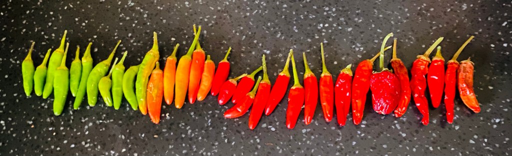 Thai chillies in various stages of drying out