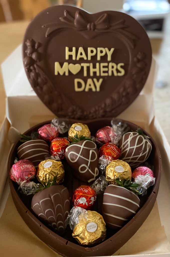 Sunday: Mothers Day, so much love today for some and so much sadness for others x x It was a fair bit colder today than the whole of the last week but we still got on with a few jobs outside. John spent the morning clearing old rails from the paddock and then dragging the smaller middle one. I spent the early bit of the morning going round cutting foliage and flowers for the bouquet of the day. Charlie came round early on with breakfast for me 🥰 pastries, fruit, yoghurt, smoothie and also a chocolate heart box made locally, beautifully made with delicious chocolate covered strawberries and chocolates inside. Near lunchtime I gathered the flowers and foliage that had been conditioning and I made my first home grown bouquet, and naturally it was going to be for my Mum 😁 I was excited and nervous putting it together but the result was beautiful, a home grown, sustainable bouquet, I even impressed myself 😝 Off round to see Mum, give her the flowers and have a cuppa with her before returning home as Sam, Luke and the children had arrived at ours. Sam got me some lovely new gardening gloves and a very professional looking pair of long blade snips for cutting flowers (I need a tool belt I think as I kept losing my secateurs this morning) We fed the tortoises and the horses then they went for a walk before going home. A quick sit down and a cup of tea before the afternoon rounds and then round to Shelley and Martins for a roast dinner which was amazing. Presents again, Hotel Chocolat choccies and a daily organiser for me to write all my jobs and musings down in, I have been spoilt rotten 🥰