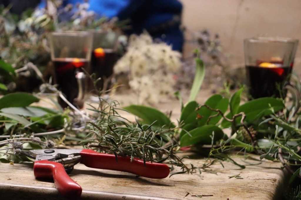 Saturday: I had round two of workshops in the evening but I mostly spent the day making wreaths and tidying up, collecting more greenery etc, it’s surprising how much it uses 😂 Saturday nights participants also went away with fabulous wreaths.