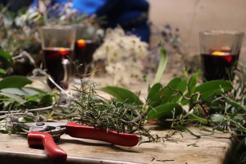 Tuesday: A better day today, dry, sunny but cold. I spent most of the day cutting various foliage including rose hips which all had to be de thorned 😂 I am hoping that there will be enough diversity to appeal to everyone and that individual personality will shine through in each wreath made 🥰