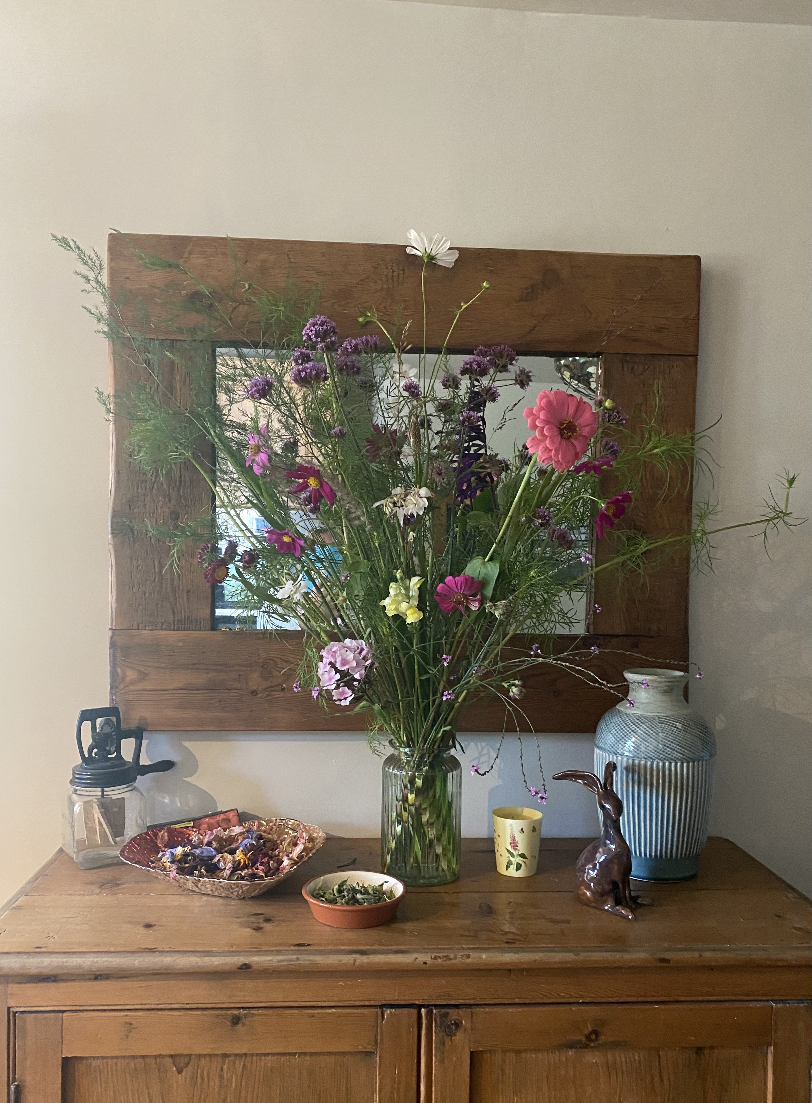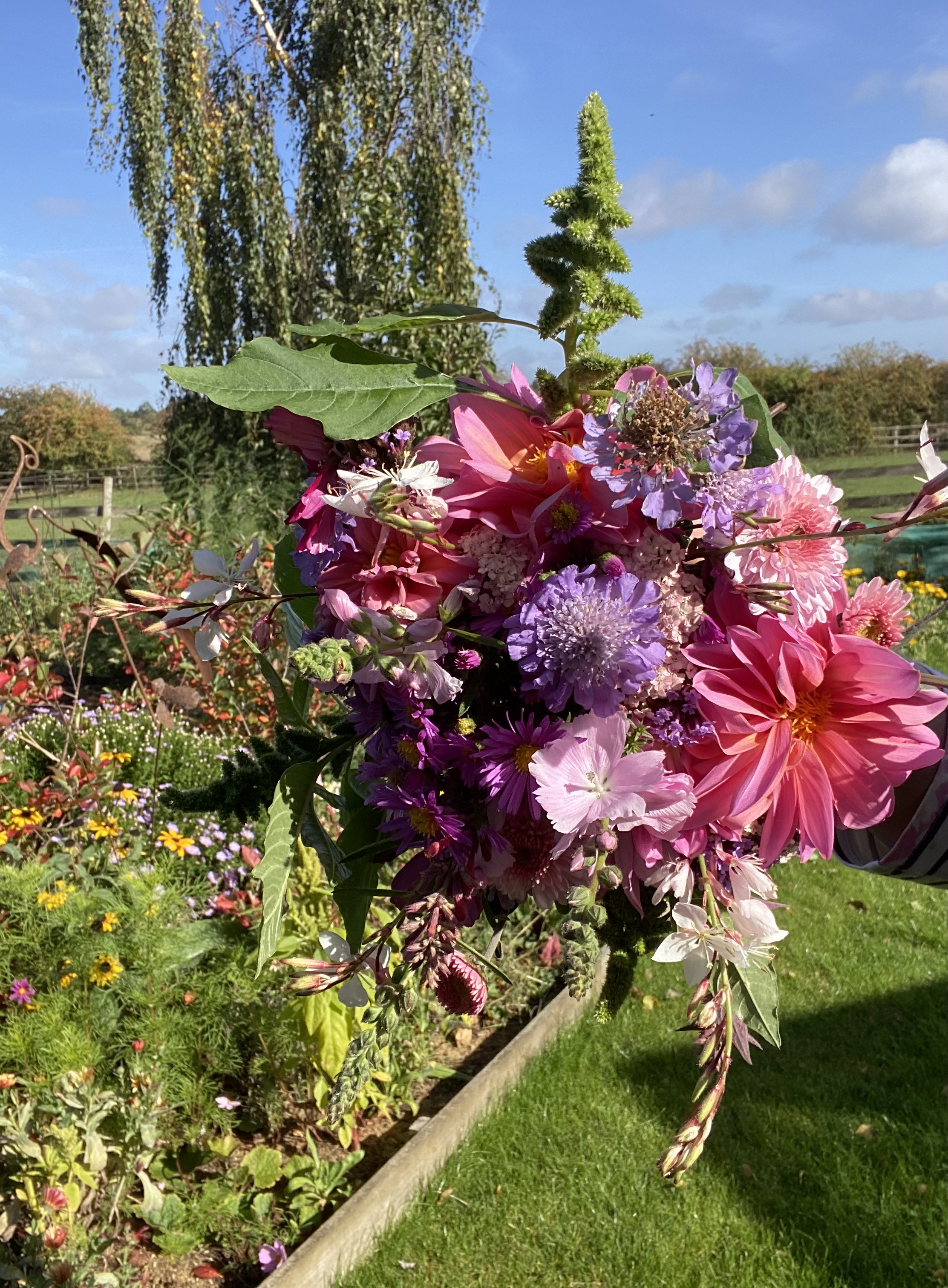 On the in the natural beauty of our Smallholding, vibrant flowers and lush foliage are cultivated on-site. Enjoy the freshness of our handpicked cut flowers and the rustic charm of our air-dried floral arrangements. Our Smallholding is proudly managed naturally, embracing a chemical-free approach with a unique forest garden design. We have a harmonious coexistence of various flowers, fruits, vegetables, and nuts, thriving side by side. This holistic approach not only ensures the well-being of our plant life but also fosters a flourishing ecosystem for the wildlife inhabiting and surrounding our Smallholding. The symbiotic relationship between our diverse flora and fauna, creates a haven of natural abundance.”