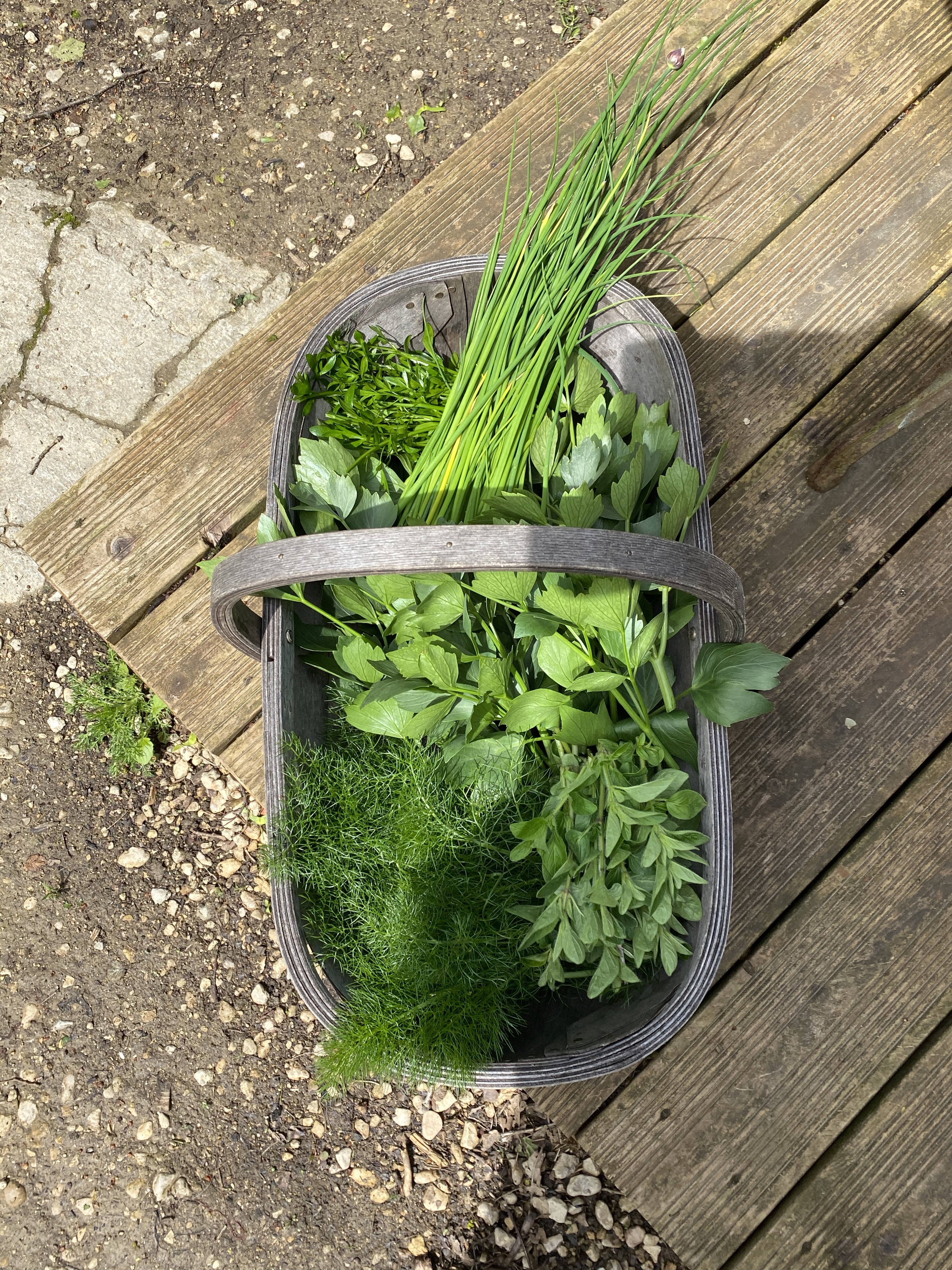 I spent the three hours weeding the asparagus bed which is also interplanted with strawberries, three rhubarb plants grown at the end of the bed and the herb area is at the top. The weeds are insane , the constant rain didn’t slow their growth at all so it was good to be able to get down and really clear them out. The strawberries that grow there probably won’t get harvested, I have other beds in the fruit cage that shouldn’t get eaten but these are out in the open and it won’t take the blackbirds long to figure out they are there. At least I can see where the asparagus is growing now I have thinned it all out a bit, it was like looking for needles in a haystack before.