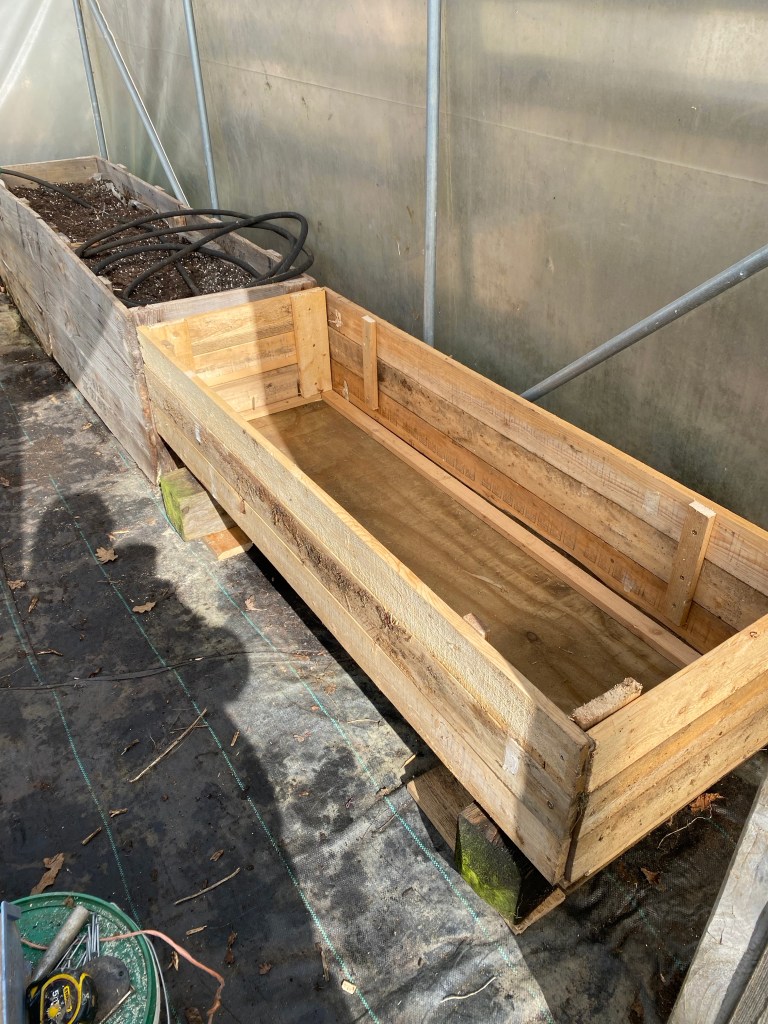 The sun came out and there was a job I needed to do that was in the small tunnel so I figured today was a good day to do that and besides I wanted to get it done so that the tunnel was good to go when the time came. I could have waited for John to do it but to be honest he has a lot of projects on the go already plus the day job so I put my entry level carpentry skills into action. We have wood lying around so I measured what needed, gathered up the wood, got it all sawn to length and put it altogether 😁 I am suitably impressed with myself I can tell you.