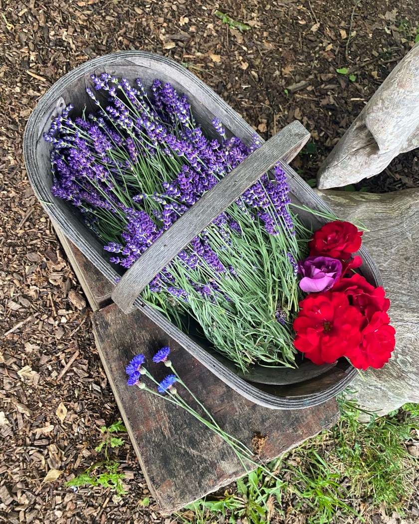 We had dinner in the evening and after I went outside to pick a bowlful of strawberries for dessert 🍓 yum. I then spent an hour in the flower hut making a fresh lavender wreath which will now hang to dry as it is.