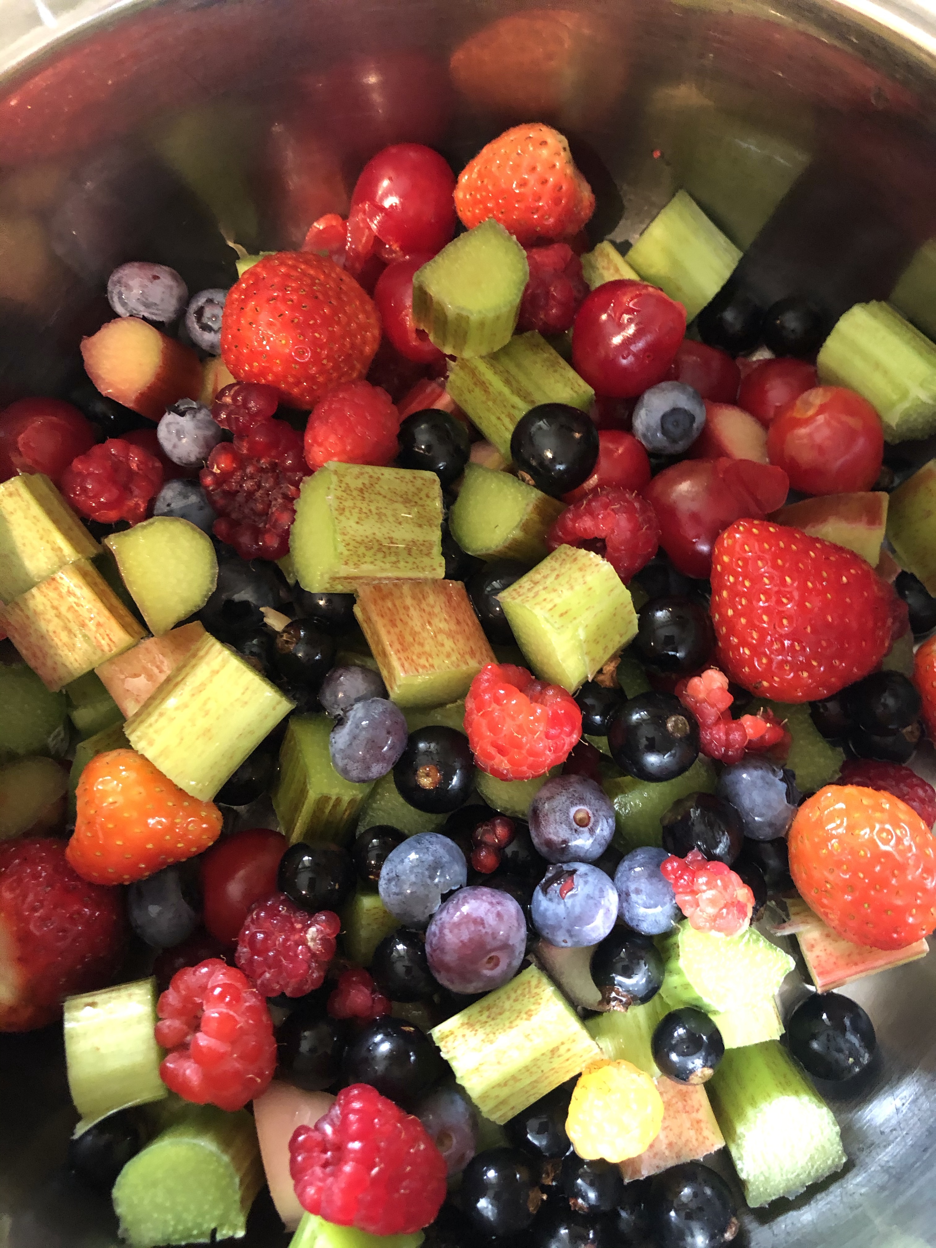 John has got a one pot chicken dinner for tonight, basically everything goes in the pot at once and cooks in the oven, that’s it very easy and he likes it 😀 veg in there that I picked this morning, carrots, beans, broccoli, potatoes, some leftover chicken from yesterday, stock and cornflour, simple and tasty with all the fresh veg packing in the flavour. Then a jumble crumble, I just invented that, for pudding, which is a mix of blackberry, apples and plums, I was going to have scotch egg and salad but Macca and I ate them this morning 😝 thinking about it they make a very good breakfast on the go, egg, sausage and bread, I really need to get on and make some of these, I want to try them with the quail eggs as a small snack, maybe in the winter when I have more time. It’s surprising how much time everything takes to do, picking, prepping, blanching, freezing, no wonder we love Birds Eye (other frozen brands of veg are available 😆) really they are a working woman’s/mans saving grace and I have watched the process they really are very fresh when frozen, I see no shame in using them.