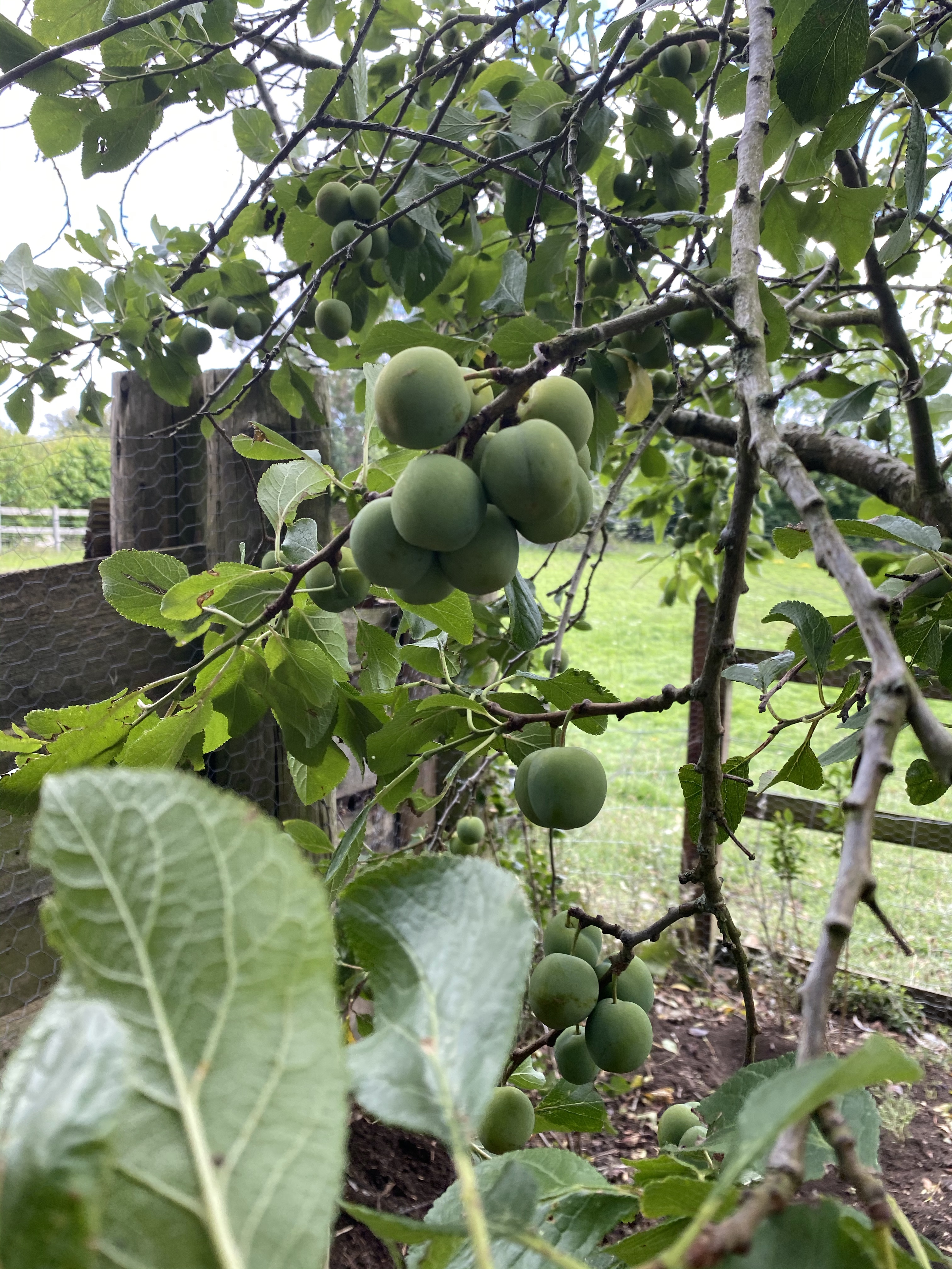 Sunday: Wet today! We picked around 4kg of plums yesterday taking the final amount to around 6kg from the one tree😀 so this morning I have mostly been processing plums, 3kg of plum jam a jar of plum sauce (plums, onion, garlic, vinegar, sugar, nutmeg, ginger, and star anise (take that out before bottling) purée, re heat and bottle) and cooked down some with sugar for the freezer ready for crumbles in the winter.