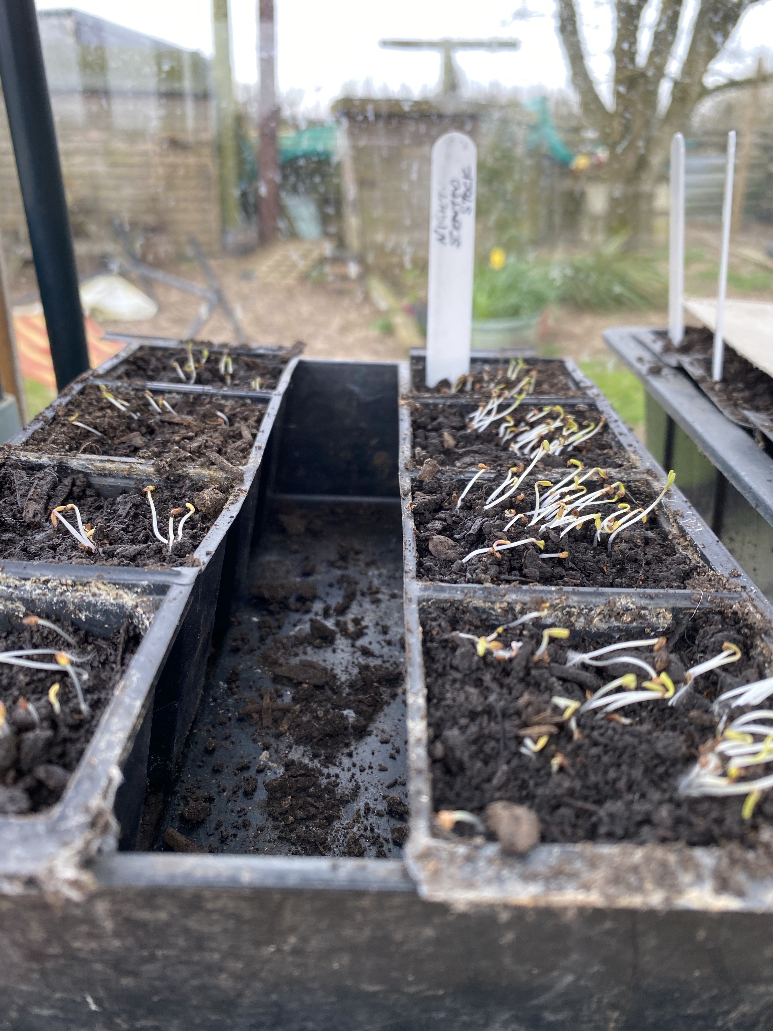 That done it was onto sorting the eggs and the egg shed and then some picking of peas. I woke this morning with the cold I had now pestering my sinuses and if you have ever had inflamed sinus you will know how I was feeling. At this point I came in and laid on the bed for half an hour as I felt truly awful, I had taken some up the nose spray so was waiting for it to work which it did after a short while. Once I felt I could actually breathe again I went out to clean the dustbin, I had noted a while back that it was in a shocking state 😜 so I was determined not to forget to give it a power wash and a scrub out while it was empty. I used some Zoflora and now it smells lovely. The next job was fed the Guineas and give the light Sussex pen a spruce up and a clean out. I raked the floor to get up debris which was still there from the ash tree we cut down, cleaned out the house, sprayed it with some diluted jeyes fluid and put in fresh straw. I also hung a piece of shading on the door to the run, not to shade but to keep the damn magpies and rooks from eating the feed. The top of the door has a metal grid but it’s big enough for them to get in, but it seems they are way to stupid to get back out again and then when they land of the floor the chickens attack them. Hopefully that will sort the issue and I no longer have to listen to the racket they make. The rest of the morning I spent watering the greenhouse and potting on some plants that I had grown from seed. I also sorted out a few plants that I have been bringing on for a while and composted anything that hadn’t made it, gave it all a good feed and a drink and then in for my sit down which I think I have earned.