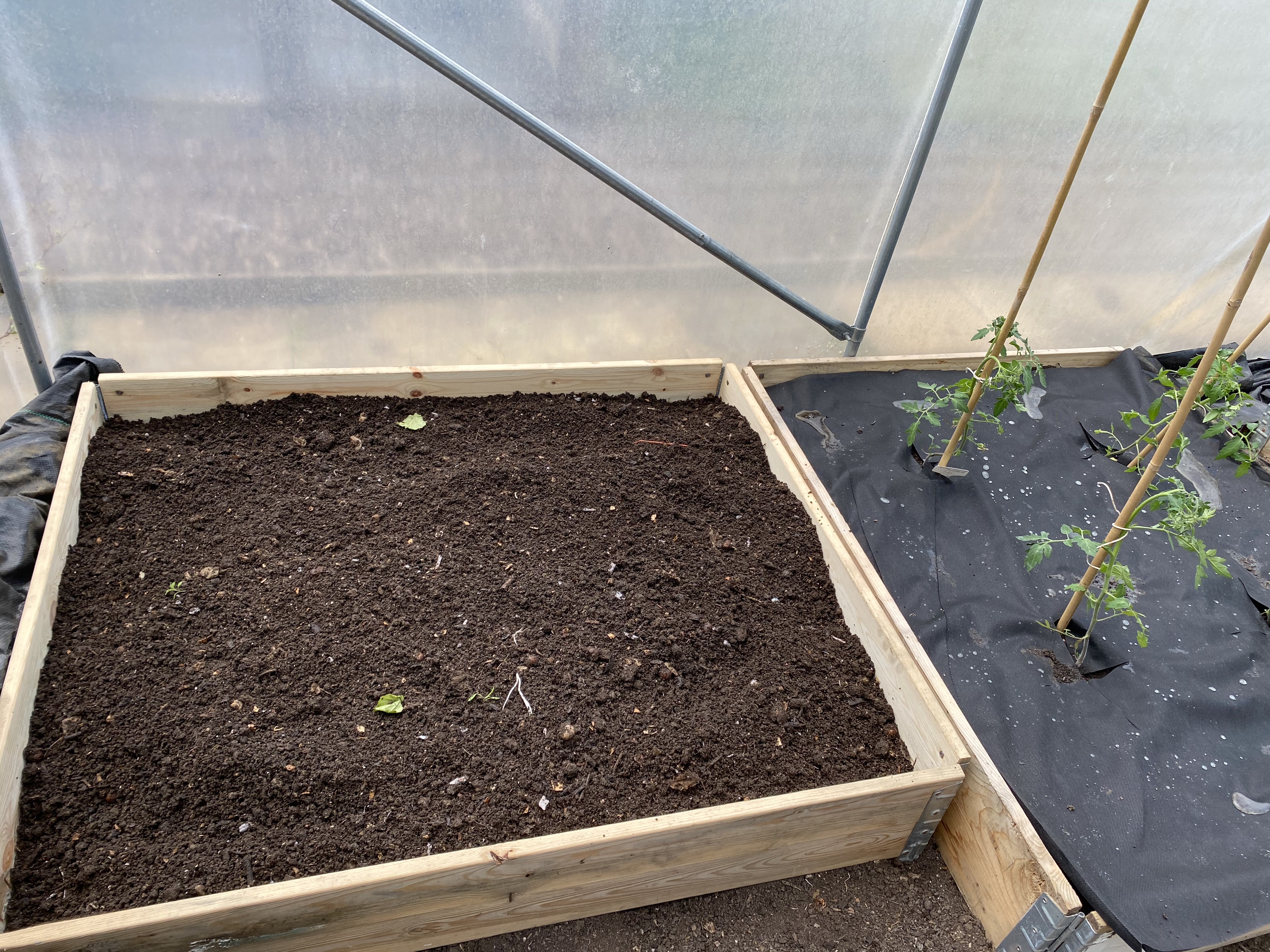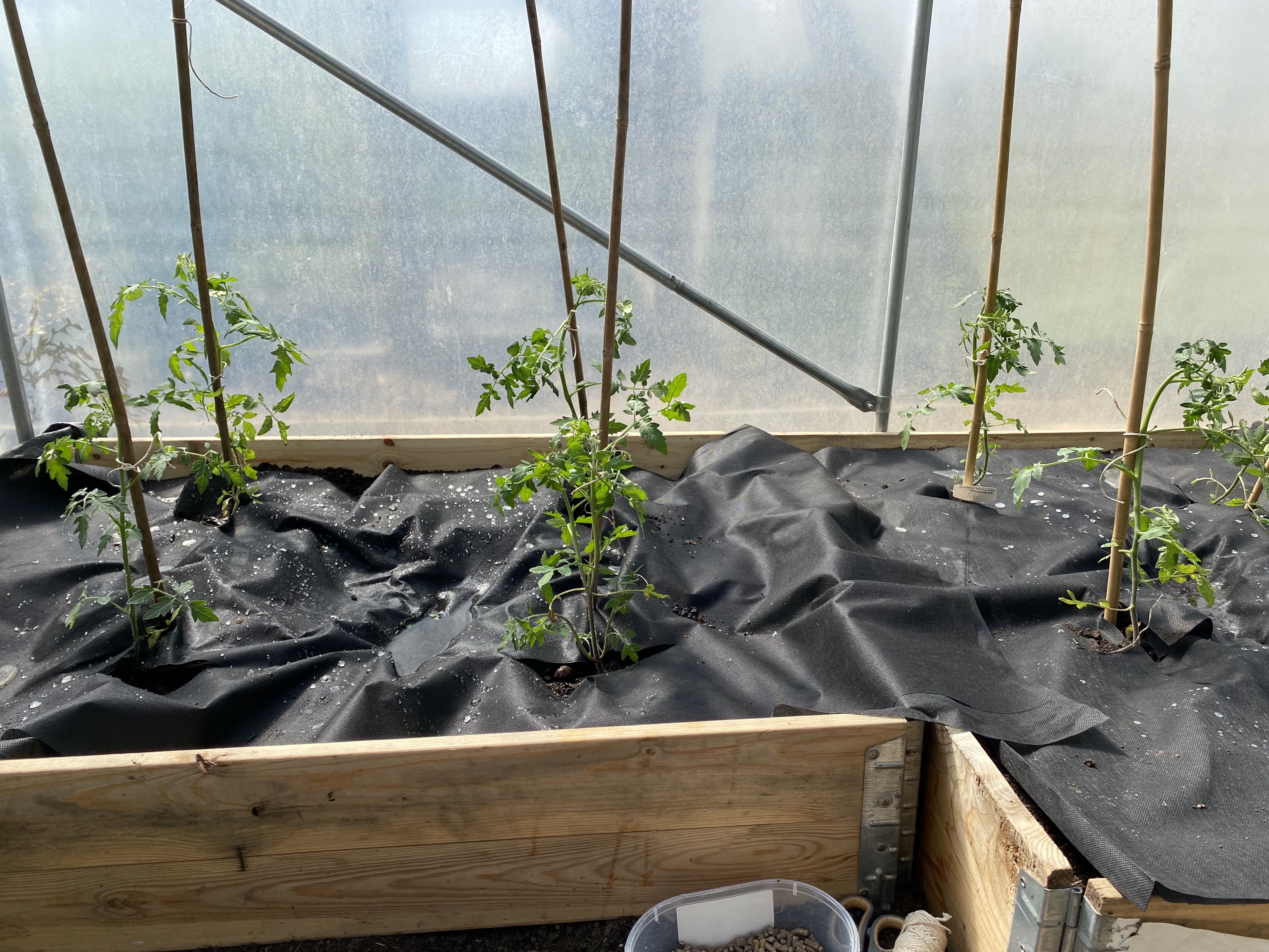 I have cleared the peas that were growing with the tomatoes in the small tunnel, they worked well as an experiment, I had a good picking of peas shoots initially and then a decent crop of peas after but now they have got leggy and straggly and are blocking light from the tomatoes so it’s time to cut them back. One of two things will happen, they will either die off and release nitrogen into the soil or they will start to grow again, I suspect the latter and I will monitor that to see if I need to take them completely out or leave them for another crop it just depends on how well the tomatoes are getting on at the time.