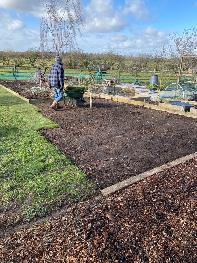 In order to work off my grumps I went out to the veg garden, it is a lovely day, fairly mild and the sun is out. I spent the whole morning sorting out the bed behind the fruit cage, it has the apricot tree (which doesn’t produce many apricots) the cherry tree (that the birds eat before I can get to them) the runner bean area, spare asparagus and the thornless blackberry. A bit of a mish mash and to be honest probably could do with a massive overhaul as comfrey and feverfew grow like billio in there and no matter how much I try I have a job to keep it all under control. After raking up debris and cutting down runners from the apricot tree I went on to sort the runner bean area out. This bit has some of the bindweed problem and so I have weed membrane down but I pulled it all up, cleared the bindweed roots that where surface and laid it back down. Then I did the other side of it, it seems like a bit of a wasted area really but for the time being it will stay like that as I don’t have the time or the energy to change any of it. I just need to make sure that it doesn’t get out of control because it is an area I don’t need to visit very much and so gets overlooked ( maybe call it the wild area 😉) The bindweed roots I pulled up will be burnt, don’t want to risk them in the compost otherwise the problem will get worse. I came in for lunch and a sit down, my legs got a bit wobbly, I was in need of sustenance. That’s when I sat and wrote this and I am hoping I find some energy to get back out there 😝